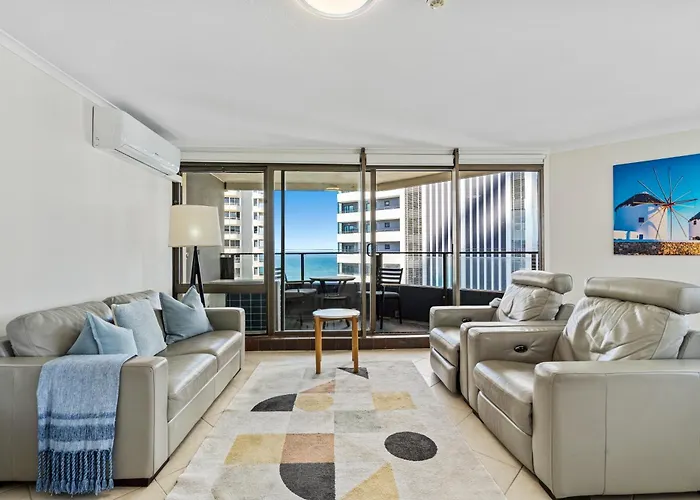 海の景色を見渡す海辺の70m²のOcean View 2Bd At Surfers Paradise With Pool ゴールドコーストアパートは、ゴールドコーストのマッキンタッシュ アイランド パークから徒歩で18分です。 サンデッキ付きのアパートはゴールドコーストかなり近くに位置しています。